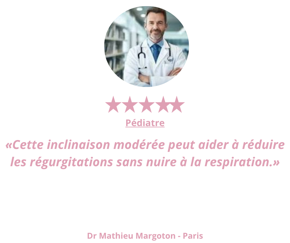 Grâce à l’inclinaison à 15°, mon bébé digère mieux et les reflux ont disparu.